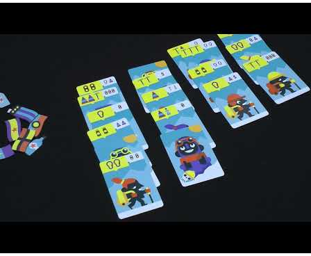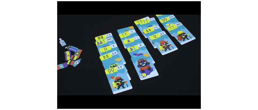 In the first round, shuffle the 25 double-sided cards, then lay them out in four or five columns depending on the player count. On a turn, draft a card from the end of a column and add it to your collection. Each card depicts one or more symbols — ropes, crampons, etc. — while also showing what's on the back. If you draft a sherpa, discard it immediately, then optionally flip over one of your cards. If you draft a mountain climber carrying vodka, on a future turn you can empty the vodka to take another turn immediately.
