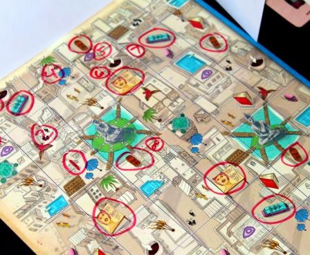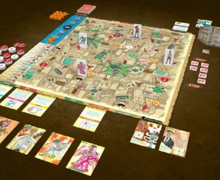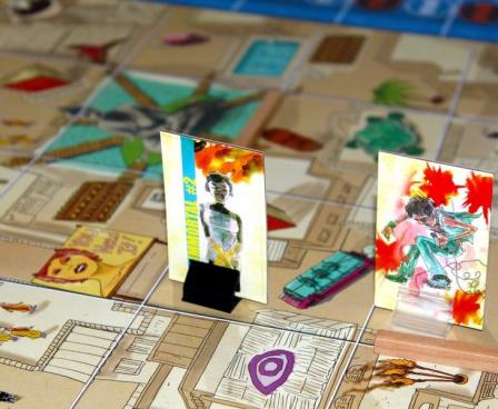 In Mind MGMT: The Psychic Espionage "Game.", one player controls Mind MGMT and must scour the city for new recruits. They move around on a secret map, trying to visit locations that match one of their three randomly drawn feature cards. They can also use their four Immortals to protect locations from being exposed.