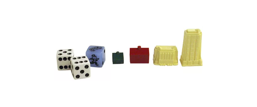 Roll three dice on your turn: two regular dice and the special "Speed" Die. The Speed Die gives you a chance for free trip to the next unowned property. (Later in the game the Speed Die could send you to the next property you owe rent on. Ouch!) From time to time you'll earn free "Bus Tickets." Use them to go where you want to go, but beware: they expire! The Speed Die and the Bus Tickets make the action speedy, intense, and sure-fire fun!