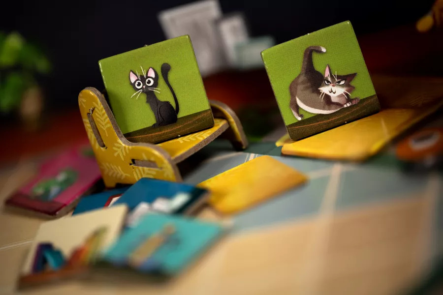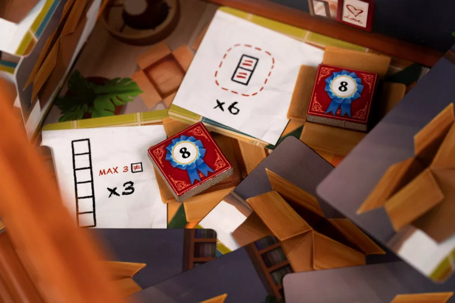 The first player who fills all the spaces of their bookshelf triggers the end game and takes the end game token that grants additional points. The game continues until the end of the turn of the player sitting on the right of the player holding the first player token.