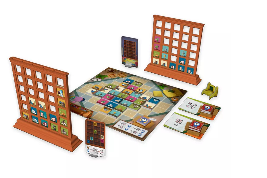 During your turn, you must take 1, 2, or 3 item tiles from the living room board (shared by all the players), following these rules: