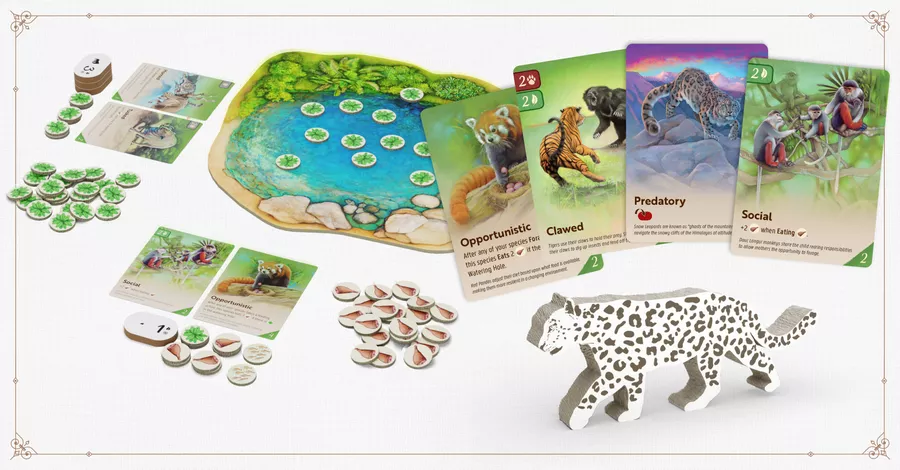 Nature is a card-driven tableau-builder played over 4 rounds. Each round is split between the Adapting Phase and the Feeding Phase. During the Adapting Phase, you will have 5 cards that can be used to: