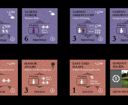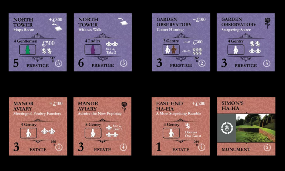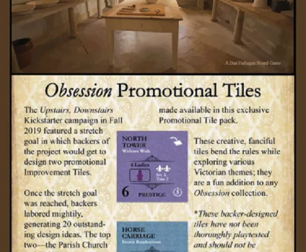These twenty (20) promotional tiles were developed as part of a stretch goal during the 2019 Upstairs, Downstairs Kickstarter campaign.