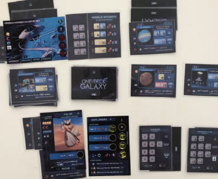 One Deck Galaxy is a co-op space civilization-building game using only cards, dice, and tokens. Each card in the deck represents both a location in space your civilization has scouted, but also the benefits it could reap by colonizing or studying it. These benefits increase your ability to roll dice and manipulate them, and help your civilization grow stronger. When the deck runs out, the era advances and your foes become more dangerous. If you're not ready, they may overwhelm you and send your empire into decline before it can become truly great!