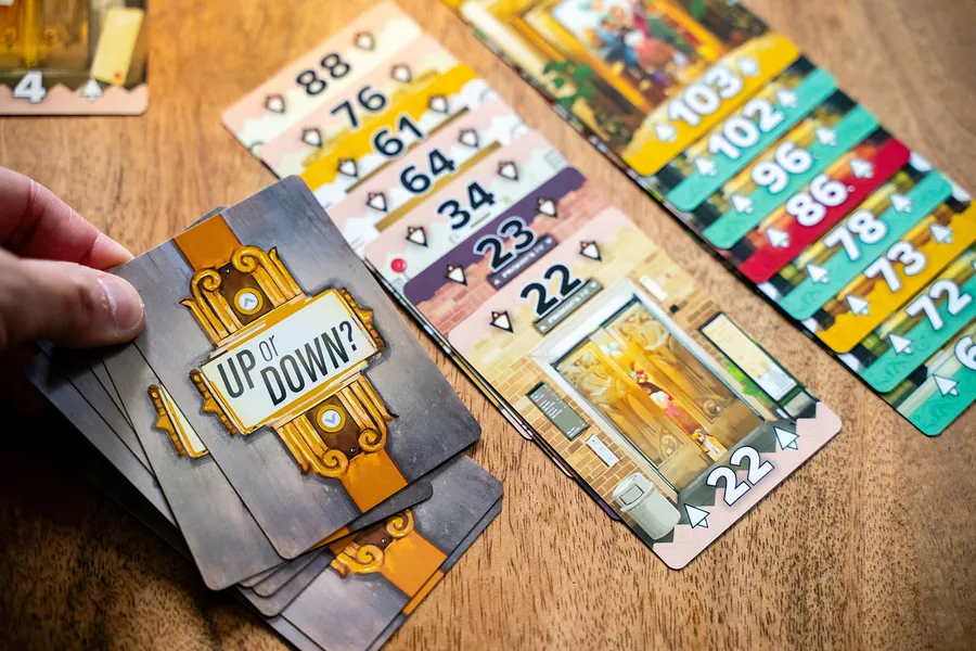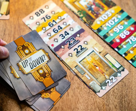 In Up or Down?, you build ascending and descending rows of cards, trying to place as many cards of the same color in a row as possible