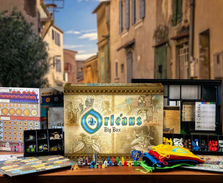 Orléans: Big Box — first released as Orléans: Anniversary Box — collects all released materials as of 2025 for Orléans, a game set in the French city of the same name during medieval times in which you must assemble a following of farmers, merchants, knights, monks, etc to gain supremacy through trade, construction and science in medieval France.