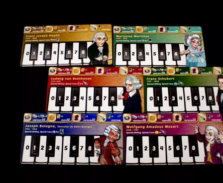 Become one of the greatest classical composers of all time! You'll use inspiration, seek fortune and hobnob with aristocrats to perform musical masterpieces and achieve your legacy in this engine building game for 1-4 players. Get inspired by your rivals' performances to create your own works of genius as the game builds to a crescendo.