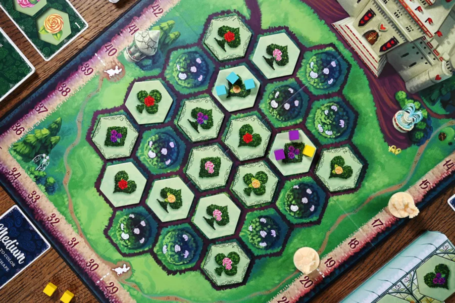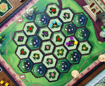 The Queen's whims are shared via cards, secret instructions each player is given into how the garden should be arranged. Her whims are always changing, so as soon as you solve one, a new one is in your hand.