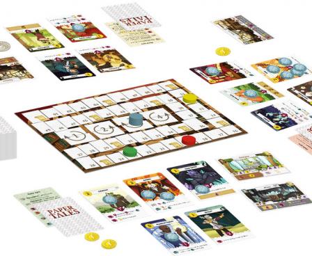 In more detail, Paper Tales is a simultaneous drafting card game. Each turn, players draft five units that they then recruit into their kingdom '' assuming that they can pay. These choices determine the players ability to shine in battle, generate great income, construct dominant buildings, and earn legend points. There are only four hiring positions available during the four rounds of the play, but your units grow older with each turn until time takes them away.
