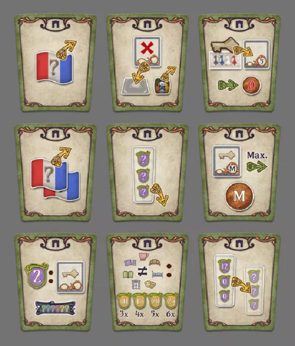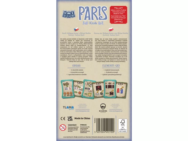 Paris : l'Étoile introduces a new collection of bonus tiles, which will add more variety and replayability to your game of Paris, as well as strategy tiles. These will give each player a unique player power, that they can choose to change if they place one of their keys on the Arc de Triomphe.