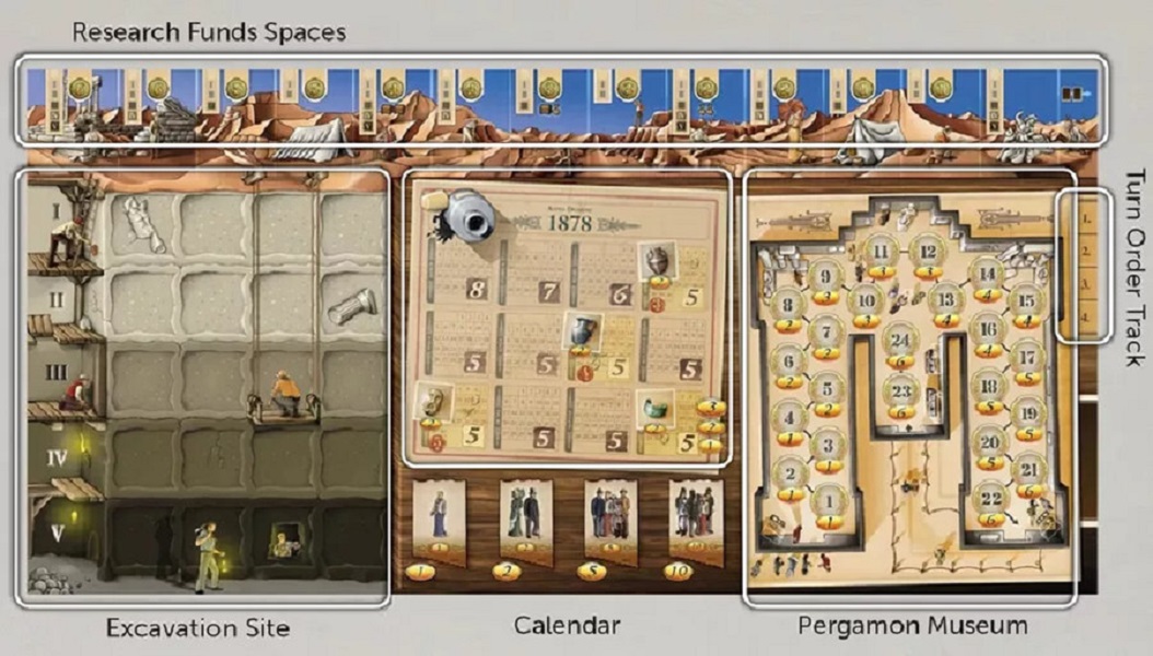 The combination of soliciting funds and racing for the best locations to excavate makes Pergamon a variable game with rules that are easily accessible. Players are forced to make choices based on the money they can obtain and the sequence in which they choose where to dig.
