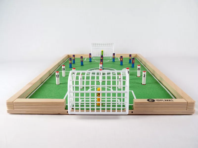 High quality wooden BOARD, measuring 53x33 cm. Covered with GREEN FABRIC designed to resemble a football field.