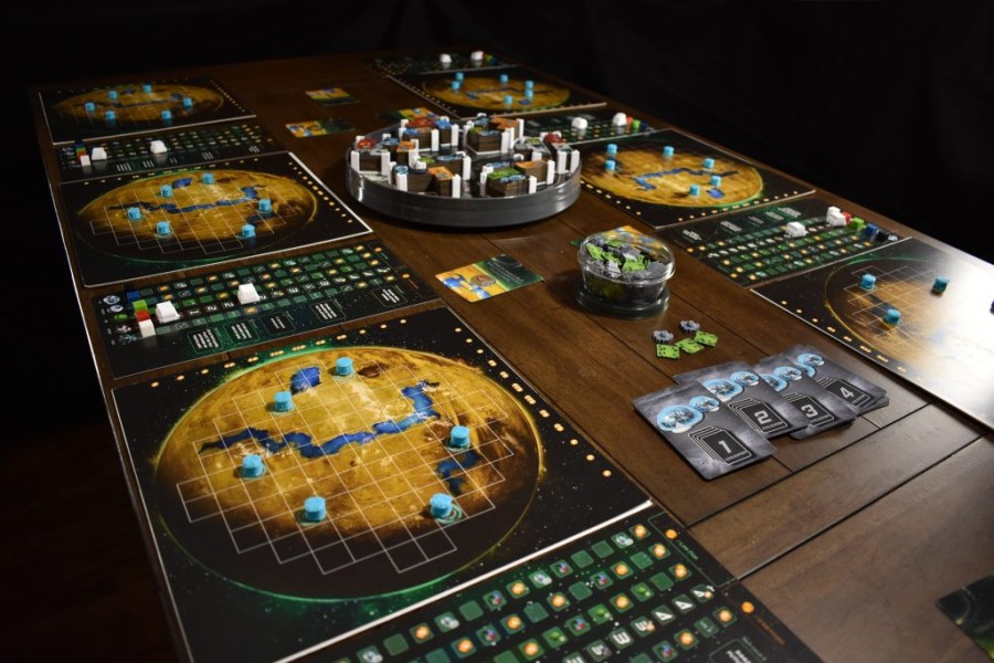 Planet Unknown innovates on the popular polyomino trend by allowing simultaneous, yet strategic turn-based play via the Lazy S.U.S.A.N. space station in the center of the table.