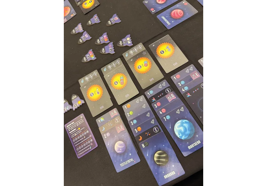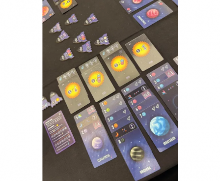 Rules are simple: Take any two cards from the dynamic market and add them to your expanding galaxy. As you place cards, create solar systems by arranging planets in numeric order and earn bonuses by collecting suns, asteroids, moons, rockets, and research projects to score the most points!