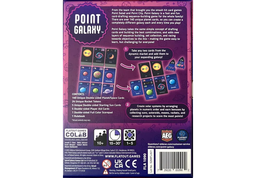 From the team that brought you the card games Point Salad and Point City, Point Galaxy is a fast card-drafting, sequence-building game for the whole family!