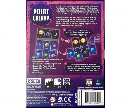 Point Galaxy takes the same simple concept of drafting cards and building the best combinations, and adds new layers of sequence building, set collection, and racing towards objectives to the mix - making the game easy to learn, but challenging for everyone!