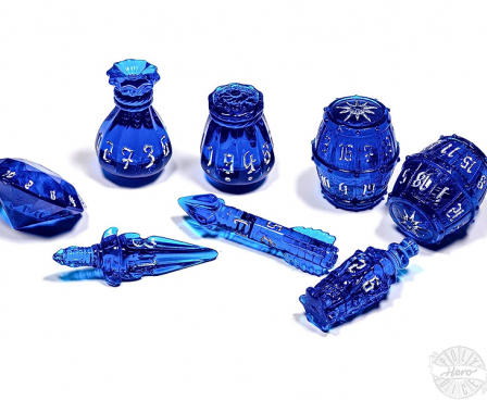 An unlikely hero approaches with the verve, guile, and dexterous reflexes to survive in a world of shadows and danger. The Rogue Set is a classic RPG 8-piece kit including 2d20 powder kegs, d12 gem, d10/d100 loot bags, d8 crossbow bolt, d6 poison vial, and d4 dagger