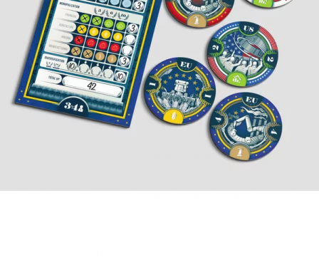 Player markers on the scoring track now reveal which player has the most victory points, but this is not the end. Players must now add up the amount of money they printed and the player who printed the most money loses all their victory points!