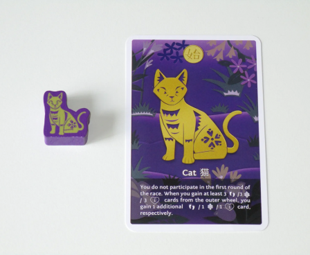 The Cat's special ability was specially designed to reflect the Cat's role in the ancient folk story of the Great Race and is different from those of the 12 animal signs of the base game.