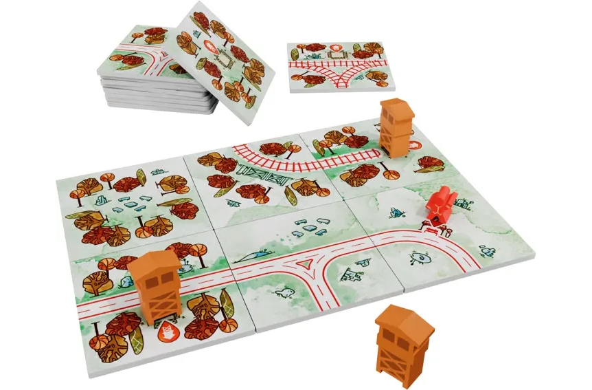 Your goal is to build Forests all around your network, while keeping them separate from each other (a bit like Cities work in the core game; at the end of the game, you make 3 points for each group of at least 3 Forest tiles that are orthogonally adjacent).