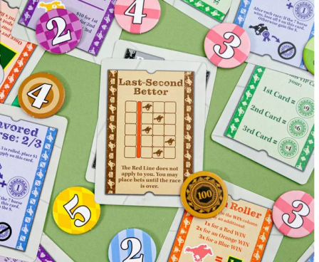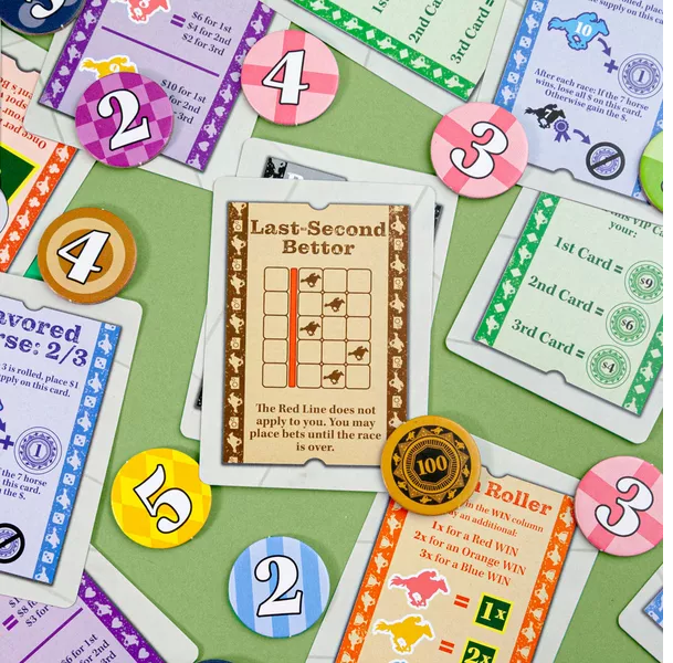 In Ready Set Bet, you and your friends head to the races for a day of cheering, jeering, and betting on your favorite horses, whose fates hang on every roll of the dice.