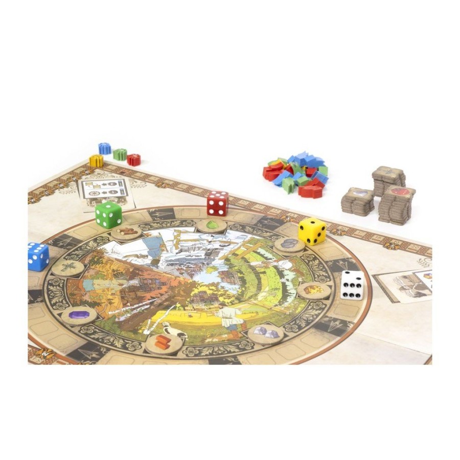 During the game, the players can carry out one of these three actions: assign a section of the cathedral, send resources to that section to build it, or go to the game board to achieve more resources. Each of these actions has its own mechanism and requires that the players pay close attention to what the other players are doing.