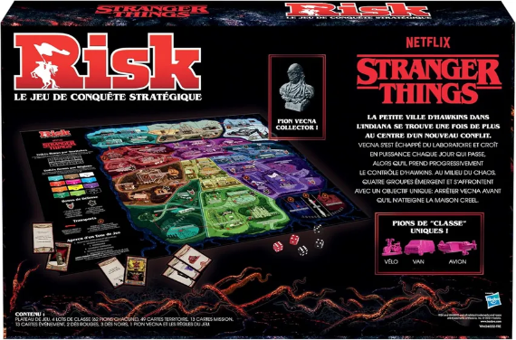 Experience the Upside Down in Risk: Stranger Things, collaboratively designed with the Duffer Brothers and using never-before-seen artwork from Kyle Lambert. Play as either good or evil forces, both sharing a common objective: stopping Vecna from reaching the Creel House. The game features custom-designed territories, iconic locations from the series, and includes bespoke tokens including Vecna himself.