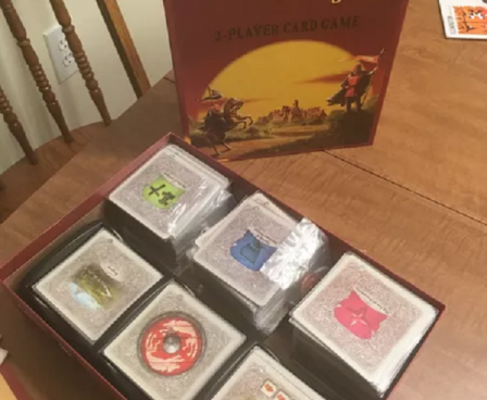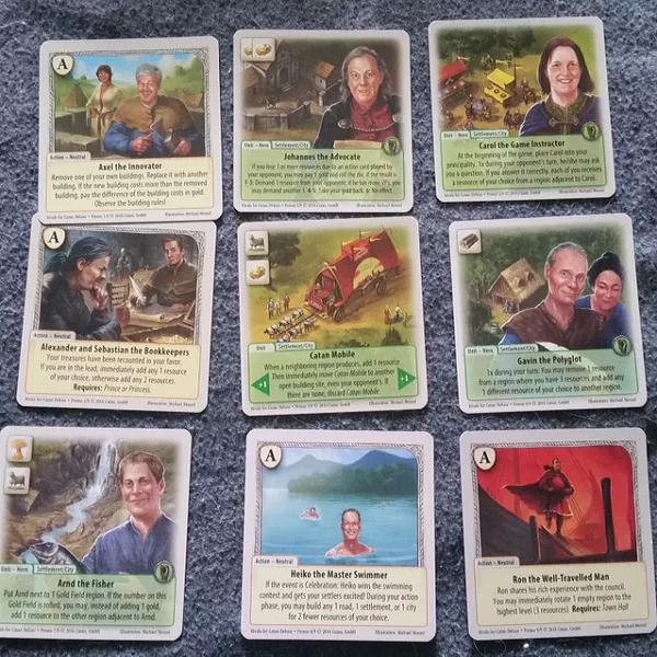 Rivals for Catan: Deluxe includes card trays to keep the different card piles organized as well as nine hard-to-find promotional cards.