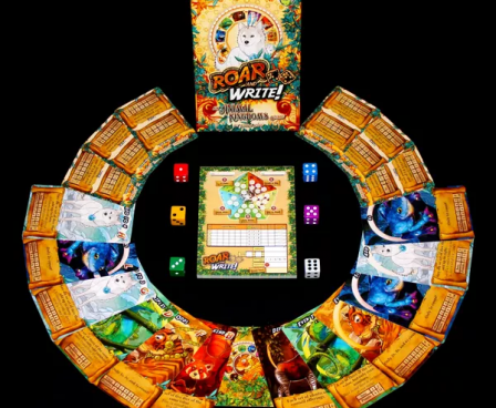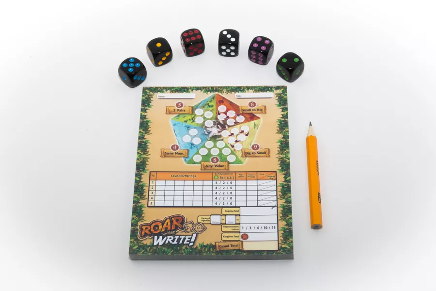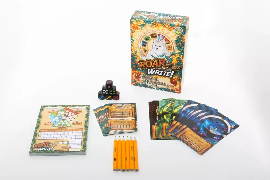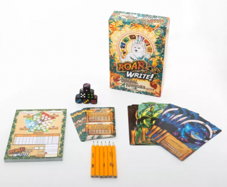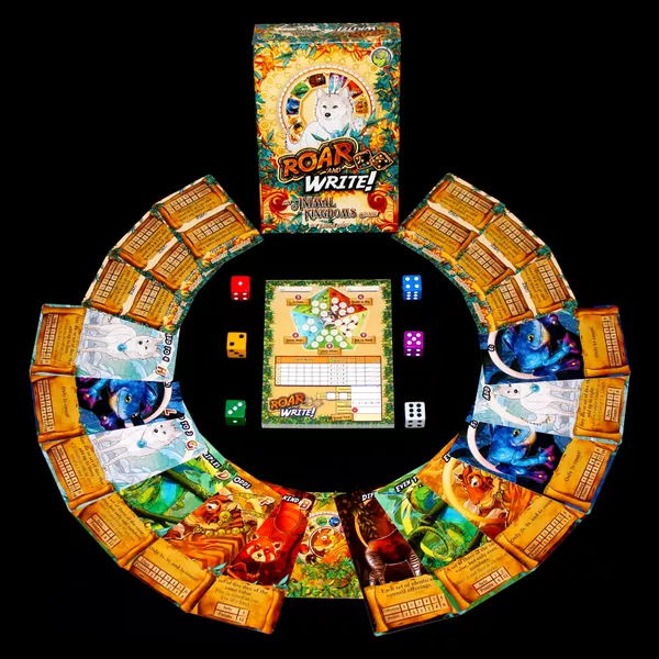 Roar and Write is a competitive press-your-luck game about impressing different council members on the selection committee, garnering favor throughout the five kingdoms, and completing your own personal objectives to rise to the top of the selection committee's choices for the new ruler of the Animal Kingdoms.