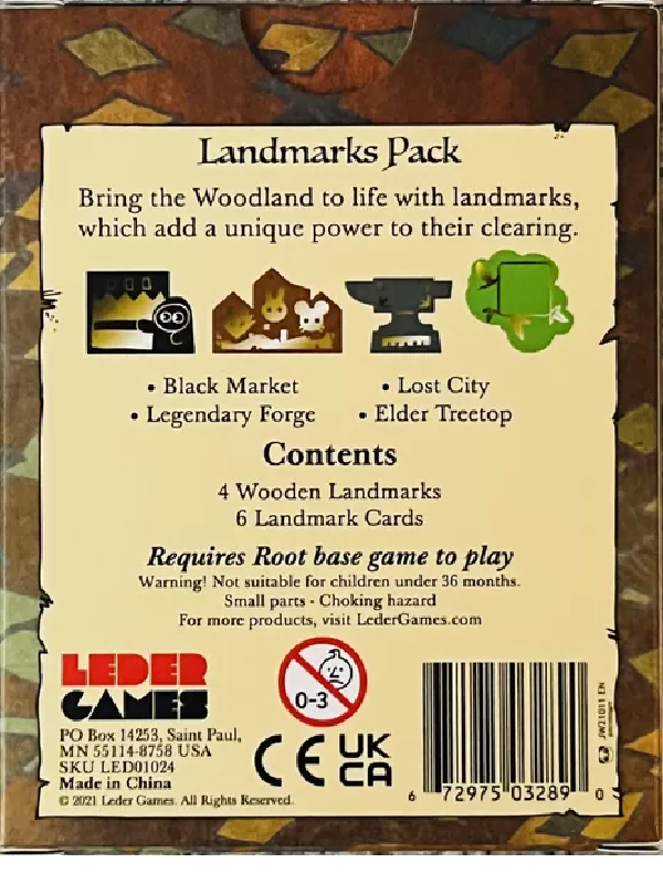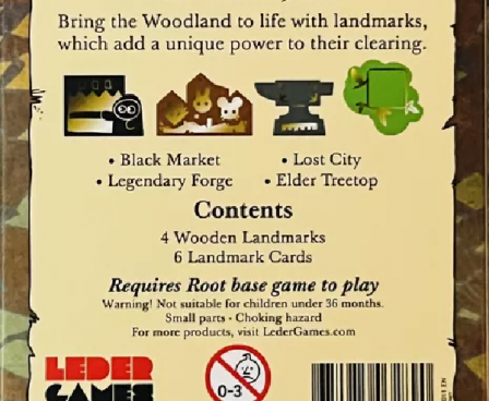 Bring the Root Woodland to life with landmarks! Landmarks add unique powers to their clearings and can be added to games with any player count.