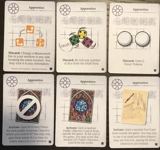 This expansion adds 3 new modules, each interchangable and compatible with other Sagrada expansions.