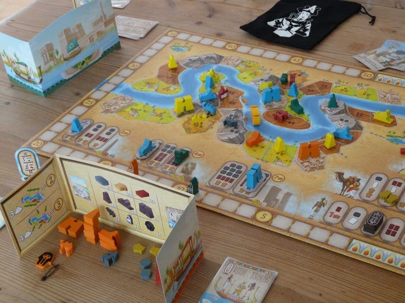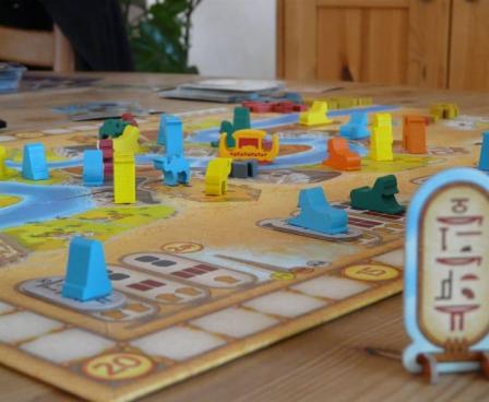 Sailing Toward Osiris is a euro-style game with worker placement, resources management, project completion, and no direct conflict. Down-time is kept to a minimum via a single action, round-and-round turn structure that emphasizes timing decisions and subtle strategies.