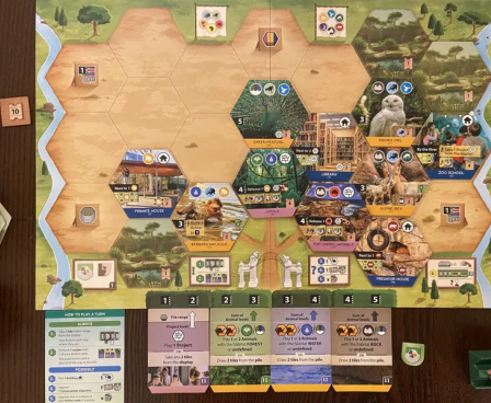 Sanctuary is based on its predecessor Ark Nova, but modifies and simplifies many of the mechanisms of that game in an elegant and surprising manner. Your goal to find the best way to puzzle together your animals, buildings, and projects on your zoo map is an ongoing pleasure!