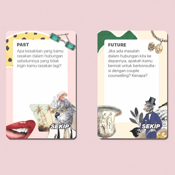 - BRAND NEW! 60 Kartu dengan 5 Kategori permainan yang terdiri dari PAST, PRESENT, FUTURE, CHALLENGE & FANTASY!