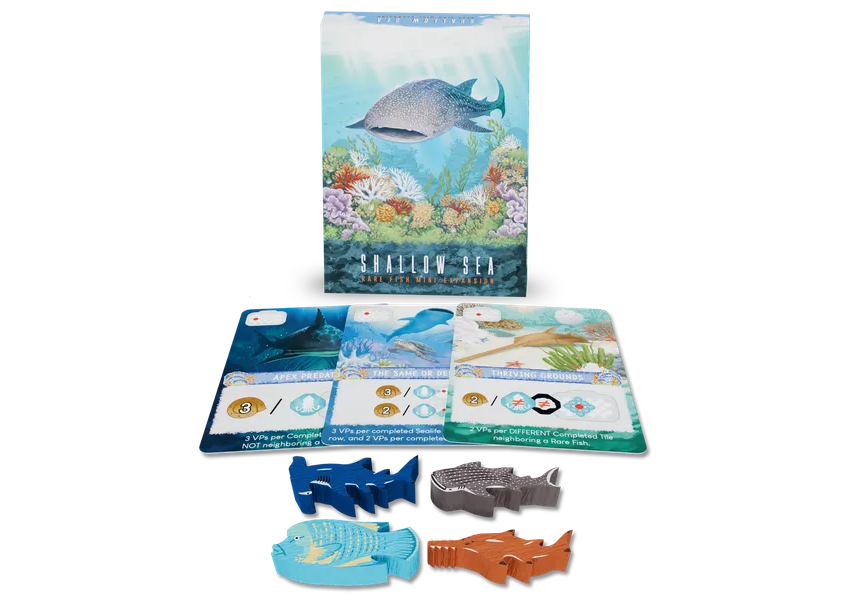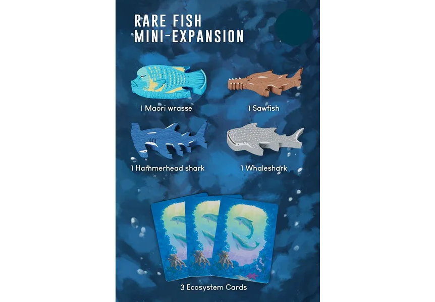 A mini-expansion that includes 4 fish meeples and 3 Ecosystem Cards featuring those meeples. The 4 types of fish included in this mini-expansion are rare fish that are either endangered or vulnerable to extinction.