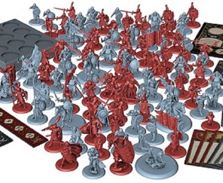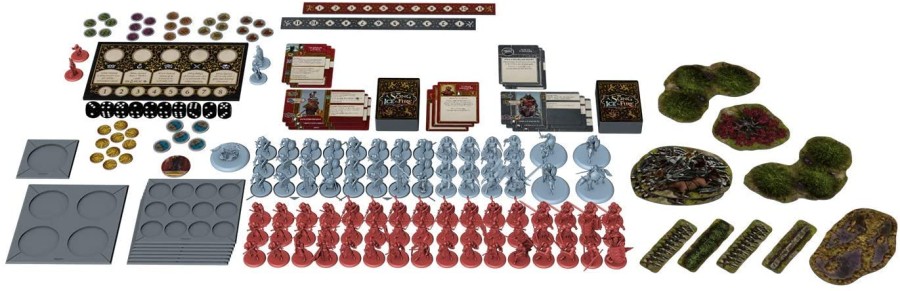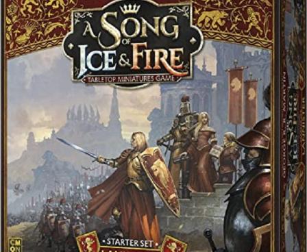 The House Lannister Starter Set for the A Song of Ice and Fire: Tabletop Miniatures Game is a perfect starting place for players looking to don the red and gold in battle. It has everything they might need, from figures and stat cards to dice and rulebooks. Lannister Guardsmen and Halberdiers, along with a unit of Clegane Brigands make up the troops. Meanwhile, characters like Jaime, Cersei, and Tyrion Lannister, along with “The Mountain that Rides” Gregor Clegane alter the battlefield in their own way. A complete set, the faction is ready to play right out of the box.
