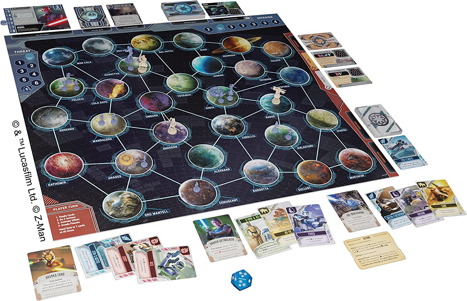 The Grand Army of the Republic is in continuous conflict with the unending waves of Count Dooku’s droid battalions. In Star Wars: The Clone Wars – A Pandemic System Game, stand together as legendary Jedi against the Sith Lord and his Separatist forces. Utilize each character’s unique abilities to cut down swarms of droids, complete missions across the galaxy, and use the power of the Force to battle iconic villains across four exciting scenarios.