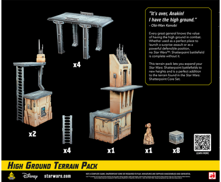 Players can add even more thematic terrain to their games of Star Wars: Shatterpoint with the High Ground Terrain Pack! Whether they’re dueling on Mustafar or fighting for control of Naboo, the two gantries and two tower frames that players can build, assemble, and paint in this pack give players even more power to customize their battlefields with terrain straight out of the Star Wars galaxy.