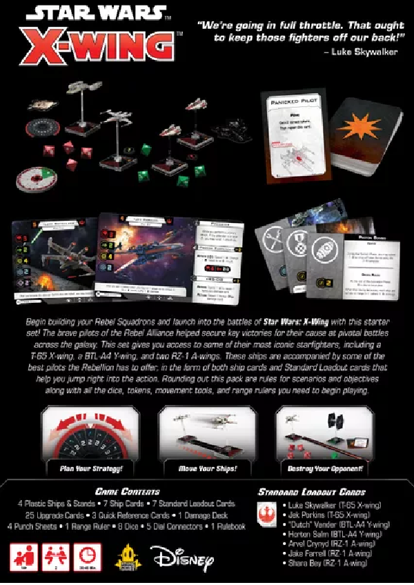 Star Wars: X-Wing (Second Edition) – Rebel Alliance Squadron Starter Pack contains everything a new player needs to fly into battle alongside the heroes of the Rebel Alliance. From miniatures to measurement tools to dice to tokens, the core components of Star Wars: X-Wing can be found in this set. The four iconic Rebel Alliance ships included in this starter are the perfect tools to return peace to the galaxy in the name of the Rebel Alliance!
