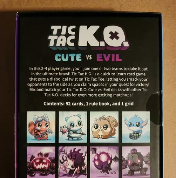 Tic Tac K.O. is a quick-to-learn card game that puts a diabolical twist on Tic Tac Toe, letting you smack your opponents to the side as you claim squares in your quest for victory.