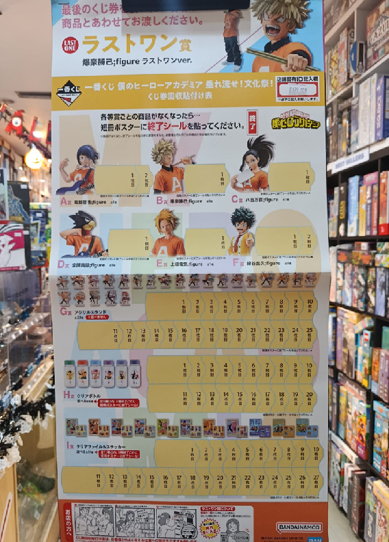 SHARED TO : 80 in stock Just restocked 179000 Enter Quantity 12345678910 Add to WishlistWeight: 100 gAgesMax: 100 Ages : 9+ Players : - Game Length : CONTENT Tiket Ichiban Kuji My Hero Academia School Festival Total Tiket 80 Last One : 1 A : 2 B : 1 C : 1 D : 1 E : 1 F : 2 G : 25 H : 20 I : 27 DESCRIPTION Log in or register to post comments Comments