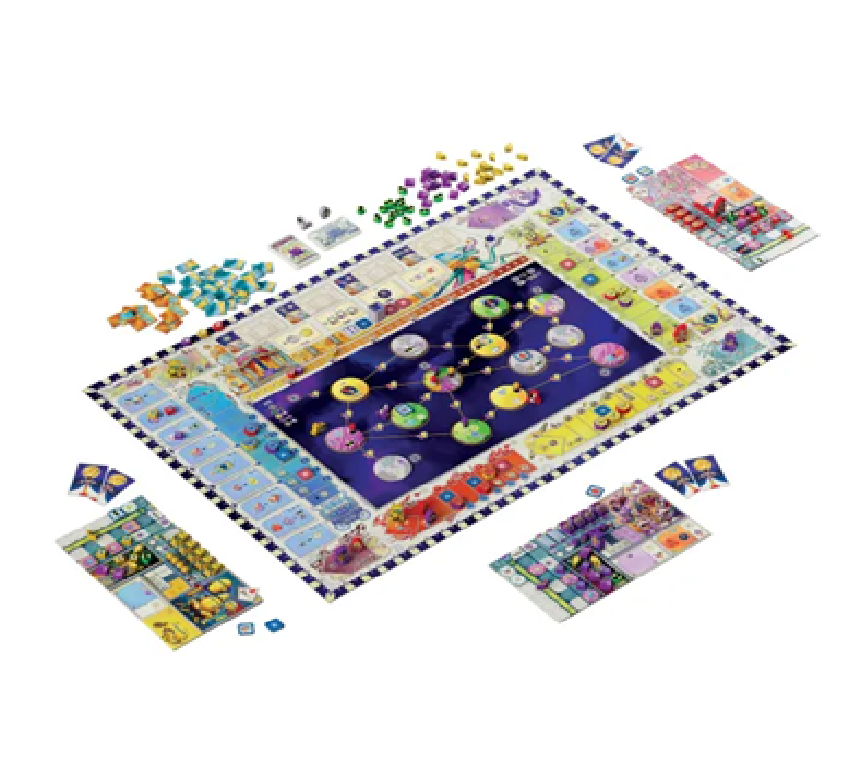 Transgalactica is a worker-placement and engine-building game with a high level of interaction between the players. In order to thrive in this game, you will travel the far reaches of the galaxy, improve your fleet's influence in all galactic matters, compete with other fleets for technological advancements, build a commercial network, and possibly even send representatives to the Galactic Senate to claim political advantages.