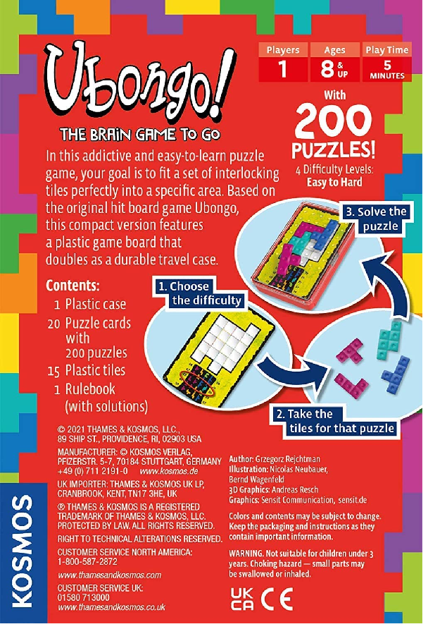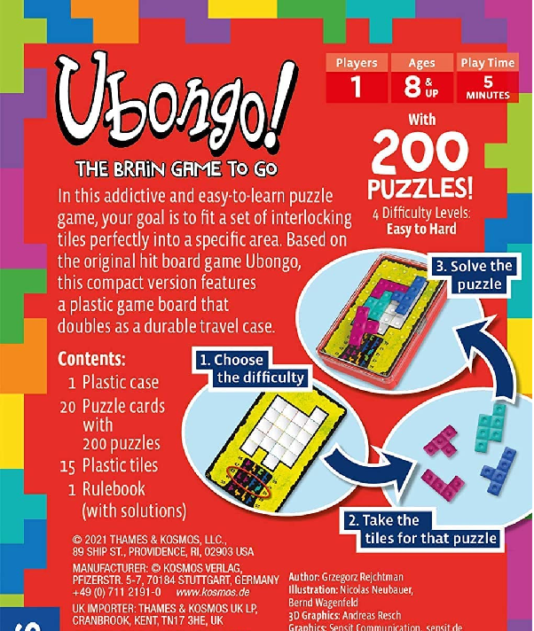 Part of the Ubongo series, this portable version uses interlocking tiles and a convenient carrying case.