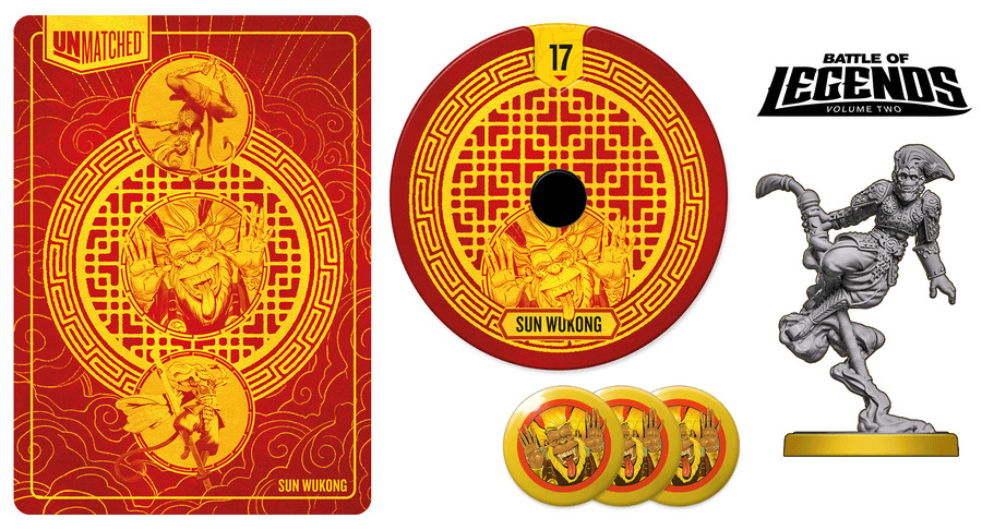 In battle, there are no equals. Unmatched is a highly asymmetrical miniature fighting game for two to four players. Each hero is represented by a unique deck designed to evoke their style and legend. Tactical movement and no-luck combat resolution create a unique play experience that rewards expertise. Just when you’ve mastered one set, new heroes arrive to provide all new match-ups. Battle of Legends, Volume Two features four heroes, Sun Wukong, Yennenga, Achilles, and Bloody Mary, and includes: