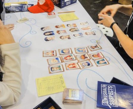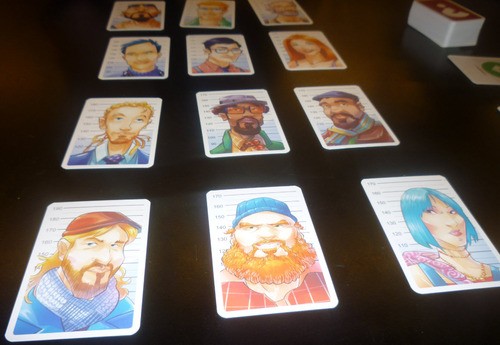 Insoliti Sospetti can also be played competitively or collaboratively (team vs team). In the latter case, a grid of twelve suspects is created. Every round the team reveals a question card and the Witness has to answer yes/no. According to the answer, the team has to remove suspects until only the Guilty one is on the board.