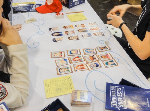 In Insoliti Sospetti ("Unusual Suspects"), one player is the Witness and the other players play the part of the Investigative Team. The Witness knows the real identity of the Guilty and tries to make the Team hit it only with his answers. The Team asks questions to the Witness and, depending on his answers, will exclude the innocent suspects after players have discussed what they learned.
