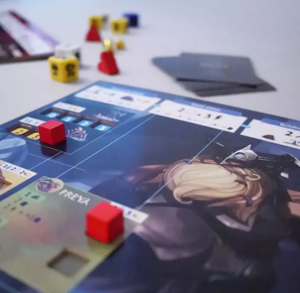 In Valda, every player finishes 5 phases during their turn. As a viking chieftan you roll dice to harvest rare resources for your tribe. Then you scavenge and explore the worlds by drafting and playing cards and actions. Building temples in the different God-domains is an important goal to gain divine abilities and get access to more powerful spells. But beware, enemies can attack you with the weapons of the Gods. Defend yourself and use your resources and shields wisely. Fight and build with honor to receive the grace of the Gods. Which God? That depends on your playing style. You like the aggressive playstyle, then is Surtur your man, you like having many options to eventually use the ultimate combo, then Freya is the one for you, and so on. Having a seat at the table of the most beautiful Asgardian palace beside the likes of Odin and Thor, that is your only goal. By playing cards, using your abilities and building temples you also gain valuable followers. The viking chieftan who has the most followers when the game ends, is worthy enough to climb the world tree Yggdrasil and becomes a God! Oh.. and he also wins the game.