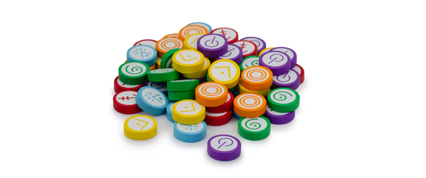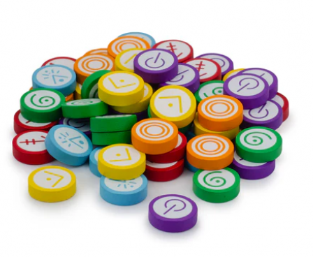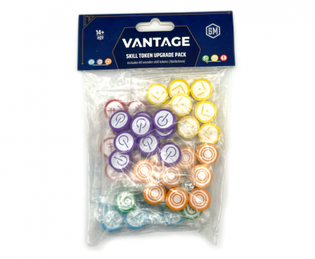 These 60 wooden skill tokens were designed specifically for Vantage (the game includes cardboard tokens). One pack covers the quantities needed for a full 6-player game.