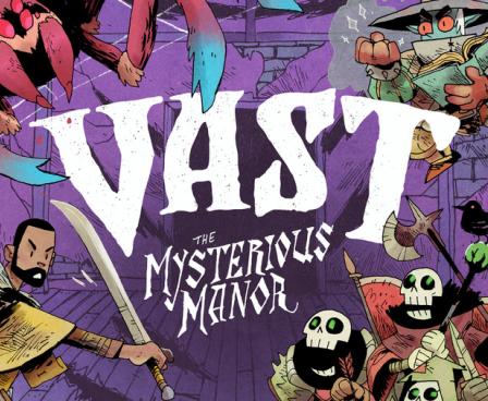 Leder Games will present the entire game with solo modes, many combinations of characters, and full games. For the first time Vast will come with a board, to hold the tiles that form the Manor. In addition Vast: The Mysterious Manor will be compatible with Vast: The Crystal Caverns and Vast: The Fearsome Foes.'