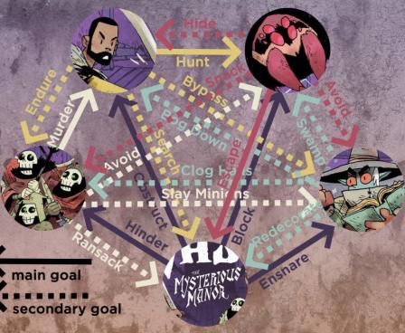 Play as the pious Paladin, the murderous Skeletons, the awesome Spider, or the Manor itself. In addition there is the Enchanter, come to this world to rule the minds of the others. Each role has its own powers, pieces, and paths to victory...and there can be only one winner.